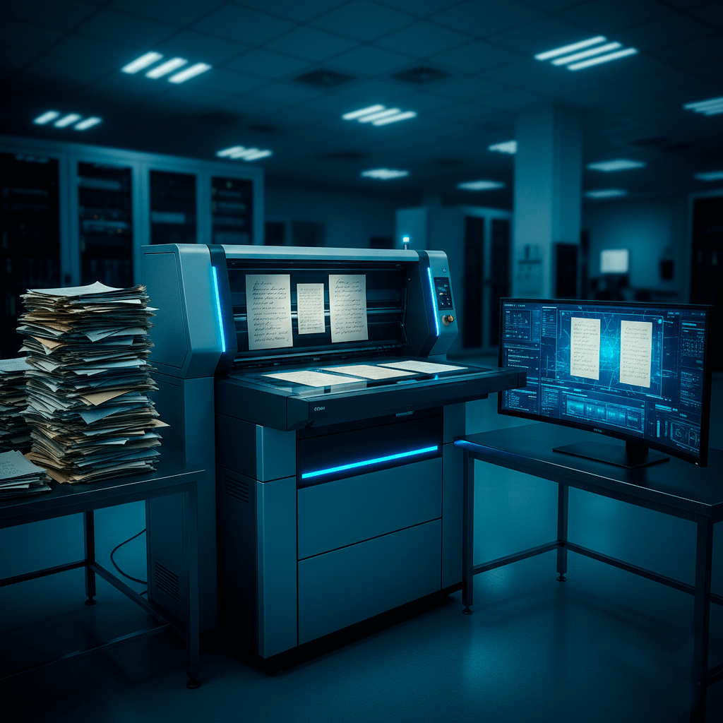 Captura automática de documentos desde papel, fotos o correos electrónicos, con extracción de datos mediante inteligencia artificial.
